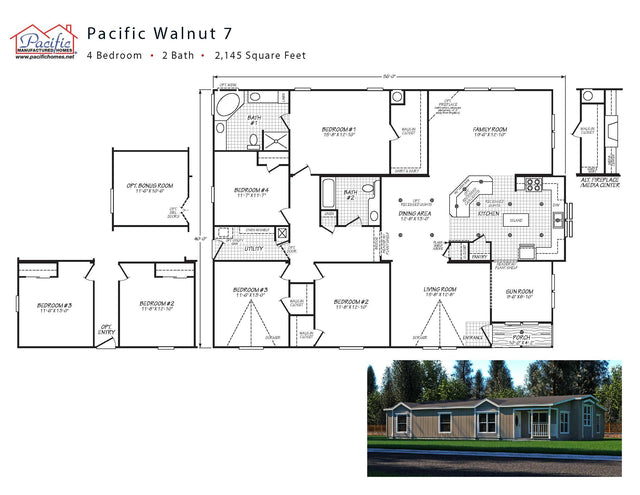 PACIFIC WALNUT 7- 4BD X 2BA 2,144 SQFT - 2144 SQFT is backordered and will ship as soon as it is back in stock.