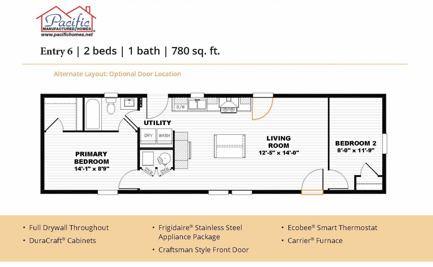 PACIFIC ENTRY 6 - 2BD X 1BA 780 SQFT - 780 SQFT is backordered and will ship as soon as it is back in stock.