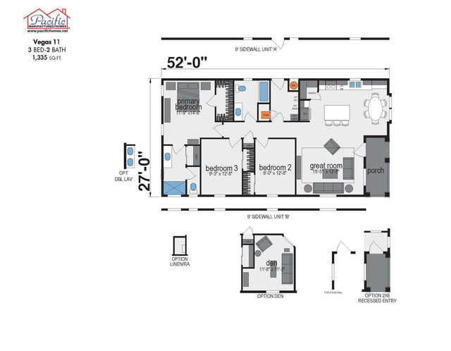 PACIFIC VEGAS 11 - 3BD X 2BA 1,335 SQFT - 1335 SQFT is backordered and will ship as soon as it is back in stock.